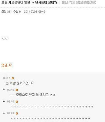 위의 예시에서는 넌씨눈이라는 말을 줄여서 말하지 않고 전부다 이야기 했는데 만약 저런 내용이 실제 대면한 상황이 아니라 인터넷 커뮤니티, 카카오톡, 페이스북 등 SNS에서 벌어졌다면 메세지나 댓글로 '넌씨눈이네.'라고 달 수 있겠죠?