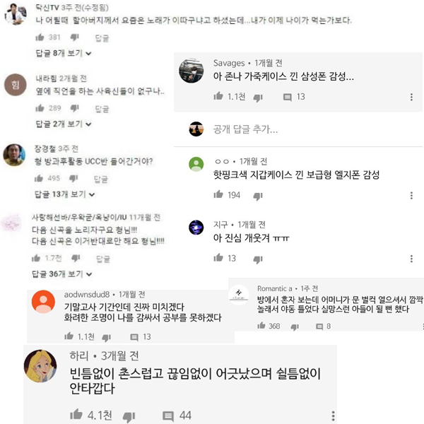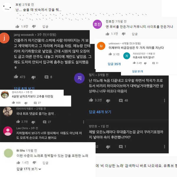 뒤늦게 호평하러 온 사람들보다는 폭망한 노래를 비꼬면서 놀리려고 온 사람들이 대부분이죠.