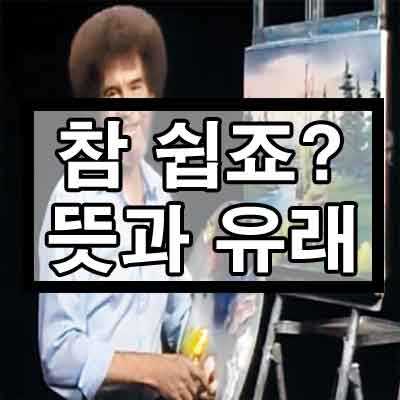밥 로스는 1942년 미국 출생으로 화가입니다. 이 화가가 유명한 이유는 '그림 그리기의 즐거움'이라는 TV프로그램을 진행하여 세계적으로 유명해졌는데요, 특이한 아프로 헤어와 덥수룩한 수염이 인상적이죠. 그가 진행했던 '그림 그리기의 즐거움'이라는 프로그램은 한국 EBS를 통하여 '그림을 그립시다'라는 제목으로 방영이 되었는데요, 해당 프로그램에서 그가 말버릇처럼 하는 말이 "That's easy"인데 더빙판에서는 이 부분이 "참 쉽죠?"로 번역되어 해당 프로그램을 보면 "참 쉽죠?"라는 말을 자주 들을 수 있습니다. 이것이 유래가 되어 유행이 된 것이죠.