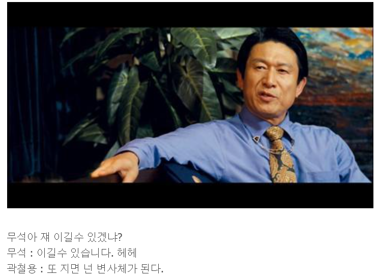 물론 당시 곽철용도 명대사로 취급받았긴 했지만, 조명이 상대적으로 덜 되었을 뿐이죠.