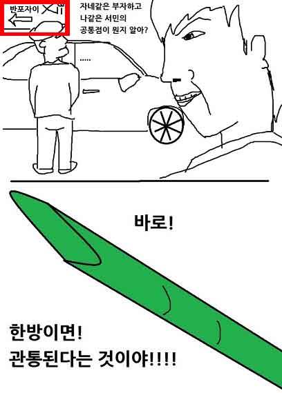 그렇다면 반포자이 아파트는 왜 드립이 되었을까요? 주로 "반포자이 뽑는다", "반포자이 각"과 같은 식으로 사용되는데요, 반포자이는 위에서도 말해드렸다시피 유명 연예인들, 정계 사람들, 그 외 재벌들이 살고있을 만큼 반포자이 아파트에서 살고있다는 것 자체만으로 어느정도 부유한 사람들이란 것을 알 수 있죠. 그렇게 부잣집의 대명사가 되어버린 것이고 그로 인해서 돈을 많이 벌거나 그런 상황들에서 '나도 이제 반포자이로 이사갈 수 있겠다'와 같은 뉘앙스로 사용되는 것입니다. 위의 이미지는 죽창드립으로 유명한 디시인사이드 와우갤러리 만화 죽창맨에서도 반포자이로 가는 사람을 부자로 표현하기도 했죠.
