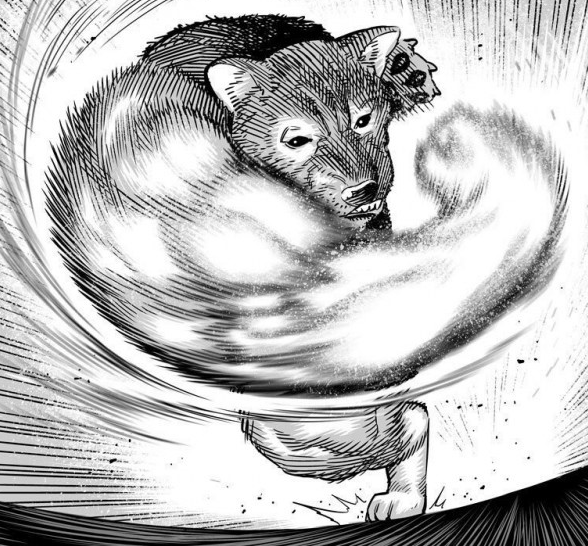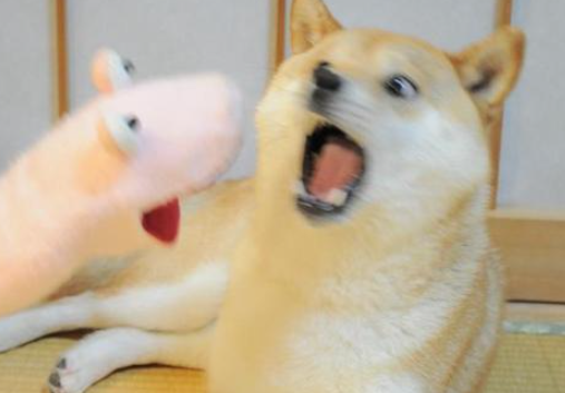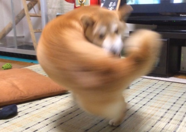 바로 위 짤인데요, 시바견은 아닌 것 같습니다만, 강아지가 자신의 꼬리쪽으로 향해 급격하게 도는 모습이 절묘하게 찍혀서 오른쪽과 같이 패러디되는 모습이 많았습니다.