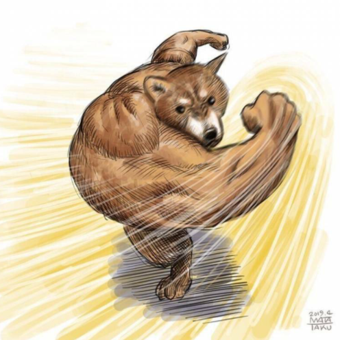 본래 시바견 밈은 2013년산 밈이라서 점차 활용되는 빈도가 줄고 사용되지 않게되고 있었는데 2020년 중반에서 느닷없이 근육시바견이 새롭게 밈이 되었죠. 이 밈은 보통 위의 짤과 더불어 옆에 다른 상대방을 그려넣어 대결 구도를 만드는 그런 느낌입니다. 이 이외에도 또 다른 유행했던 짤이 있습니다.