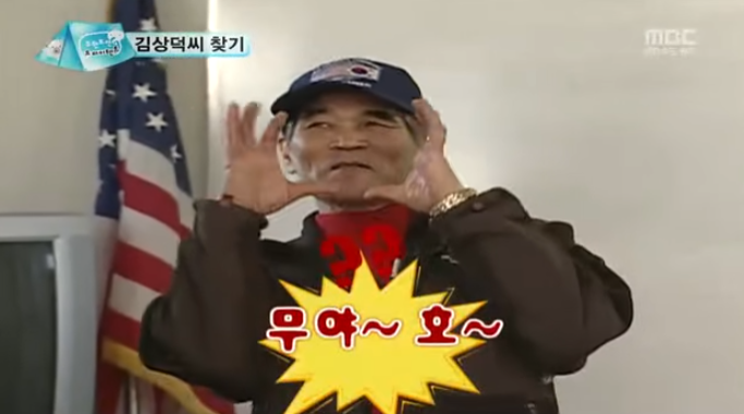알래스카에서 김상덕씨를 찾기 위해 현지에 살고 있는 사람들과 이야기를 나누던 도중 유재석이 "무한도전을 보신 적이 있으십니까?"라고 물었고, 이에 한 할아버지가 "아뇨, 잘 몰라요"라고 답했으나 옆에 다른 할아버지가 "저희가 (무한도전을) 많이 보죠"라고 응답했습니다. 이에 노홍철은 "혹시 액션이 어떻게 되는지 아세요? 무한~"이라는 말을 남겼고 당연히 무한도전을 많이 봤다면 "무한~"다음에 이어지는 말이 "도전!"이란 것을 알겠지만 그 할아버지는 "무야~호~! 뭐..."라는 알 수 없는 정체불명의 멘트가 나왔고 형돈이 이어 "그만큼 신나시는 거지~"라고 답변을 해서 마무리 되었습니다. 이렇듯 무야호의 유래는 무한도전이라고 할 수 있겠습니다.