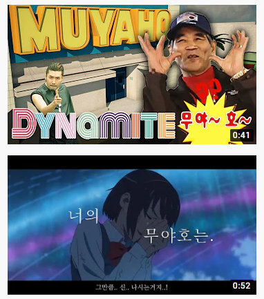 가운데 재생 버튼을 누르면 무야호라는 말이 언급된 부분을 확인할 수 있습니다.