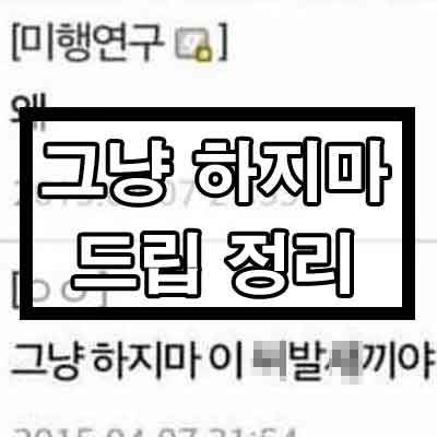 오늘 알아볼 드립은 바로 '그냥 하지마 이 씨X새X야'입니다. 인터넷을 많이 이용하시는 분들은 한 번쯤은 봤을거라 생각하는데요, 과연 어디에서 시작되었는지, 그 원본은 무엇인지, 또 어떤 변형들이 있는지 이번 시간에 알아보도록 합시다.