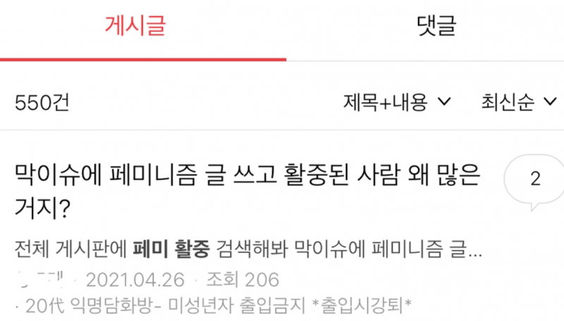 4월 들어서 인터넷상의 남녀갈등은 굉장히 심해졌습니다. 특히나 서울 재보궐선거에서 남성과 여성의 경우 극명한 차이를 보여주기도 했죠. 또한 남초 커뮤니티들에서는 여초 커뮤니티에서 주로 사용하는 단어인 '허버허버', '웅앵웅', '힘조'등의 단어가 유튜브 영상이나 공중파 방송, 웹툰 등에 나오자 이를 저격하여 논란을 일으킨 바가 있습니다. 여초 커뮤니티에서는 이를 막기 위해 해당 웹툰에 들어가서 남성들의 댓글 공격에 방어하는 모습을 보여주기도 했는데 이때 쭉빵카페 역시 포함되어 있었죠. 그런데 얼마 전부터 쭉빵카페의 막이슈 게시판에 페미니즘 관련 글을 썼다가 활동 중지를 받는 사례가 계속 발생하게 됩니다.