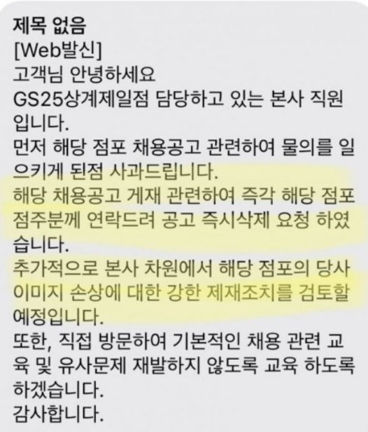 GS25 상계제일점에서는 근무자를 모집하는 모집공고에서 페미니스트를 뽑지 않겠다는 공고를 냈었던 적이 있습니다. 이에 여성들이 목소리를 내자 GS25는 바로 해당 점포에 연락하여 공고를 삭제했고 추가적으로 본사 차원에서 해당 점포의 이미지 손상에 대한 내용까지 강한 제재조치를 검토한다고 하였죠. 이번 남혐논란의 대응과는 달리 사뭇 강경하게 대응하는 모습입니다.