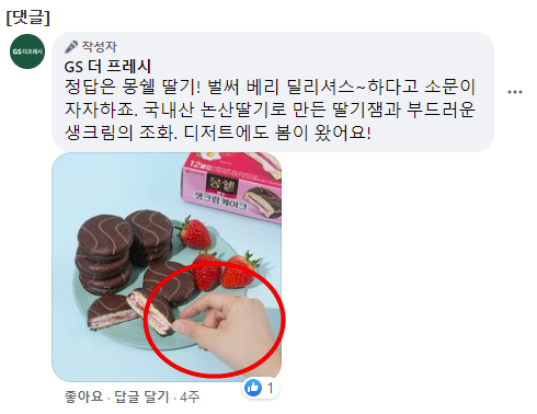 몽쉘 딸기를 홍보하는 내용에도 저 메갈리아의 손동작이 있습니다.