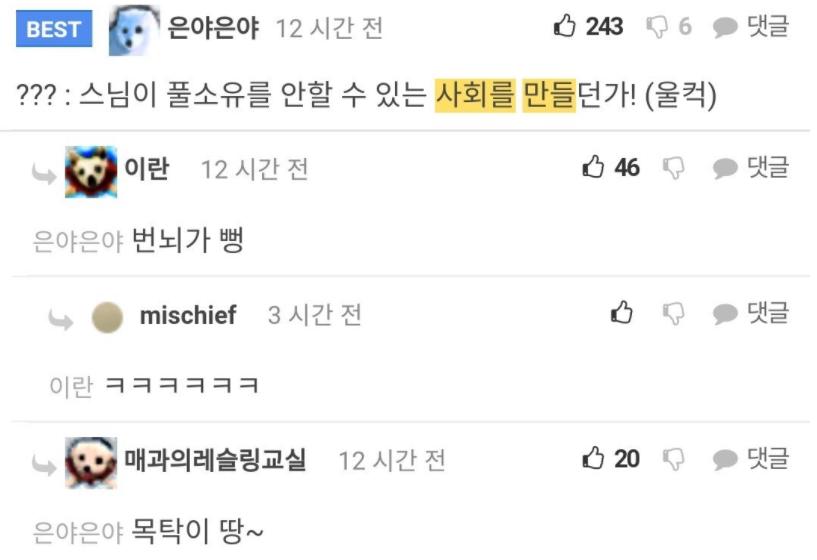 이번에 알아볼 드립은 바로 '○○가 잘되는 사회를 만들던가'입니다. 자매품으로는 '속이 뻥~!'과 '울컥울컥'이 따라붙죠. 주로 보수 성향의 인터넷 커뮤니티 혹은 유튜브에 댓글로 자주 볼 수 있는데요, 그렇다면 과연 이 드립은 어디에서 나왔고 어떤 식으로 사용될까요? 한번 함께 하나하나 알아보도록 합시다.