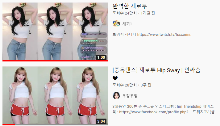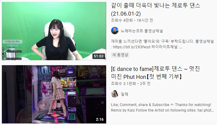 이 이외에도 유튜브에서 검색해서 찾아보거나 아프리카TV 및 트위치TV에서 찾아보면 더 많은 다양한 사람들의 제로투 댄스를 볼 수 있습니다.