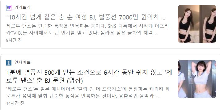 또 최근에는 해당 댄스를 몇 시간동안 반복해서 춰서 많은 별풍선을 받았다는 사람이 주목받으면서 제로투 댄스는 더욱 인기를 얻고 있는 중이죠. 특히 여성 인터넷 방송인들을 중심으로 해당 춤을 많이 추고 관련 영상들이 계속 업로드되는 등의 행보를 보이고 있습니다.