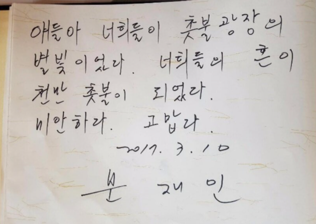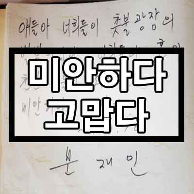 먼저 '미안하다 고맙다'라는 말은 문재인 대통령이 2017년 3월 10일에 박근혜 전 대통령의 탄핵 이후 세월호 피해자들을 위로하는 자리에 찾아가서 위와 같은 방명록을 작성합니다. 방명록 내용은 "얘들아 너희들이 촛불광장의 별빛이었다. 너희들의 혼이 천만 촛불이 되었다. 미안하다. 고맙다."라는 내용이었죠. 이에 많은 사람들이 미안하면 미안한거지 도대체 뭐가 고맙냐라며 비판했습니다. 아무래도 정권을 잡을 수 있게끔 계기가 되어줘서 고맙다라는 말을 적은게 아니냐는 말이 정론이죠. 여하튼 세월호 피해자들을 추모하는 자리에서 정치적인 견해를 방명록에 적었다며 비판받았습니다.