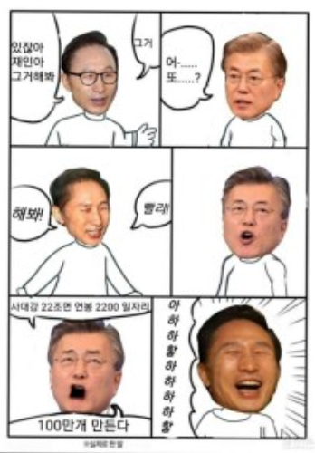 이런 식으로 합성해 정치 관련 내용을 돌려까기도 하는데요, 그만큼 이 '그거해봐 그거'패러디는 다양한 상황에서 사용될 수 있어서 한때 큰 인기를 끌은 밈입니다.