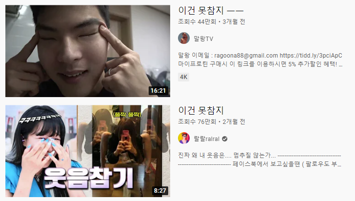 실제로 유튜브에 '이건 못 참지'를 검색해보면 수 많은 유튜버들의 영상이 올라옵니다. 그만큼 현재는 자주 사용되다 못해 유튜브나 아프리카TV, 트위치TV등에 완전히 정착한 드립이라고 할 수 있습니다.