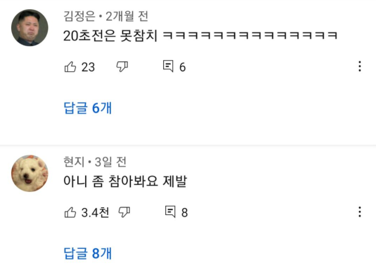 이번 시간에는 이렇게 이건 못 참지 드립에 대해 알아보았습니다. 너무 많은 사람들이 사용하고 퍼져서 위처럼 기출변형 드립도 나오고 있고, 너무 자주 노출되다보니 질려하는 사람도 등장하고 있습니다. 뭐, 적당히 알아서 잘 사용하면 되겠죠? 그러면 이번 포스팅은 여기서 마무리하도록 하고 다음번에는 또 다른 글로 다시 찾아오도록 하겠습니다. :)