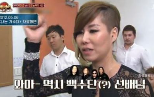 이 말의 유래는 2012년에 디시인사이드 나는 가수다 갤러리에서 시작된 유행어입니다. 위의 영상을 보면 알 수 있듯이 예능 프로그램 나는 가수다2 에서 백두산이라는 가수가 무대를 마친 뒤 대기실의 장면을 보여줬는데 이 때 대기실에 있던 박미경의 리액션으로부터 시작되었습니다. 당시 박미경은 "와! 역시 백수단 선배님! 오! 완전 무대를 뒤집어 놓으셨다. 진짜! 최고의 선배! 화이팅! 오! 와 멜로디가 달라진 거 같애 진짜 안쓰는 창법..."이라는 말을 했는데 이 부분이 굉장히 오버스럽기도 하고 또한 국어책 읽듯한 발음, 그리고 백두산의 이름을 백수단으로 틀린 것 까지 함께 어우러져서 디시인사이드 나는 가수다 갤러리 내에서 크게 인기를 얻었습니다.