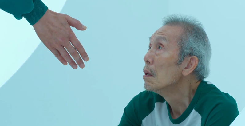 먼저 오징어게임에서는 구슬치기 에피소드가 있습니다. 생존자들은 2명씩 팀을 이루게 되는데 바로 전 게임이 줄다리기 게임이었기 때문에 다음 게임도 힘을 이용한 게임이라 추측한 사람들은 여자, 노인과 팀을 맺으려 하지 않지만 주인공인 성기훈이 노인 오일남에게 손을 내밀어 짝을 맺게 되죠.