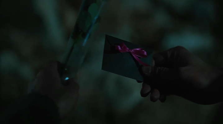 이후 결국 오징어게임에서 승리를 거머쥔 성기훈은 거액의 돈을 받았으나 죄책감으로 인해 사용하지 않은채로 방황하다가 길거리에서 장미꽃을 파는 할머니를 만납니다. 그 할머니는 꽃을 다 팔아야 된다며 사달라고 부탁을 했고 성기훈은 이에 장미꽃을 구매하죠. 장미꽃에 같이 있던 카드를 발견하게 되고 살펴보는데 앞면에는 오징어게임 마크, 뒷면에는 시간과 장소가 적혀져 있고 "당신의 깐부로부터"라는 문구가 적혀져 있었습니다. 충격적이게도 노인 오일남은 오징어게임의 설계자였음이 밝혀지게 되죠.
