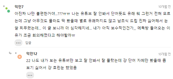 이건 이래서 안 된다, 저건 저래서 안 된다라며 점점 불편이 많아지고 이를 다 수용하게 된다면 결과적으로는 표현의 자유를 침해하는 정도까지 도달할 듯 합니다. 뭐, 그래도 명백한 고인드립이나 혐오성 단어들은 최대한 자제하는게 맞겠죠. 하지만 남초발 유행어라고, 여초발 유행어라고 즉, 자신의 편이 아닌쪽의 유행어라고 무조건 불편해하는 자세는 말 그대로 자세를 고쳐 앉으라는 말을 해주고 싶네요. 그러면 이번 포스팅은 여기서 마무리하도록 하고 다음번에는 또 다른 글로 다시 찾아오도록 하겠습니다. :)