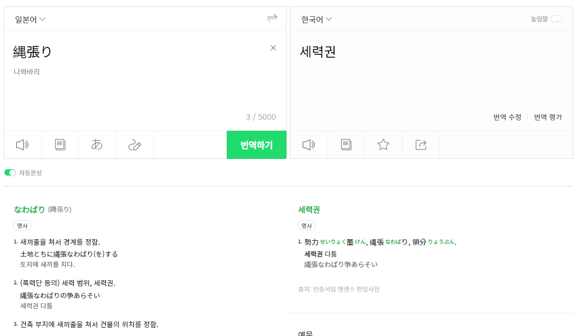 먼저 나와바리는 자신의 구역을 설정하다라는 뜻을 가진 일본어 숙어입니다. 일본어로서의 원래 의미는 건축 시공을 하기 전 미리 구역을 나누는 작업을 이르는 말이었는데요, 일제강점기의 잔재로 하이바, 요지 등의 말과 같이 남아서 사용되는 말입니다. 현재 한국에서 사용되는 나와바리의 뜻은 '구역', '세력권'과 같은 의미로 사용됩니다.
