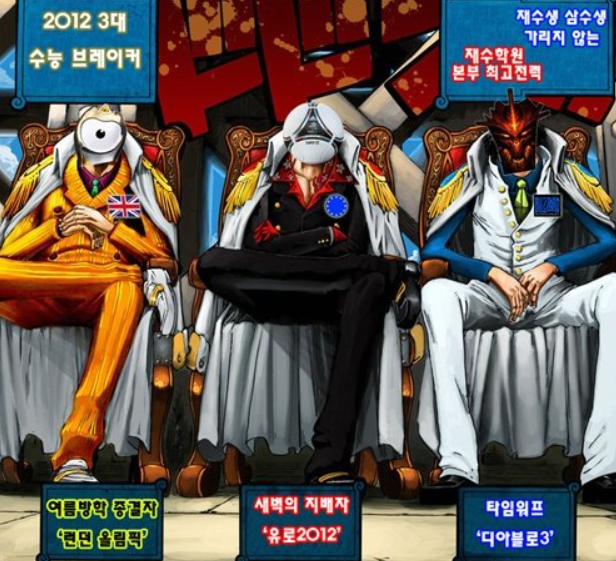 이번 시간에 다뤄볼 밈은 바로 삼대장입니다. 여러분들은 삼대장 하면 어떤게 떠오르시나요? 아마 어린시절 애니메이션이나 만화책으로 원피스를 보셨던 분들은 해당 작품의 등장인물들이 떠오를겁니다. 원피스에서는 해적과 해군이 등장하고 여기서 대장 직군을 가지고 있는 해군 세 명을 일컫어 삼대장이라고 표현합니다. 그렇다면 과연 삼대장은 무엇이고 어떤 식으로 밈이 되었는지까지 한번 알아보도록 하겠습니다.