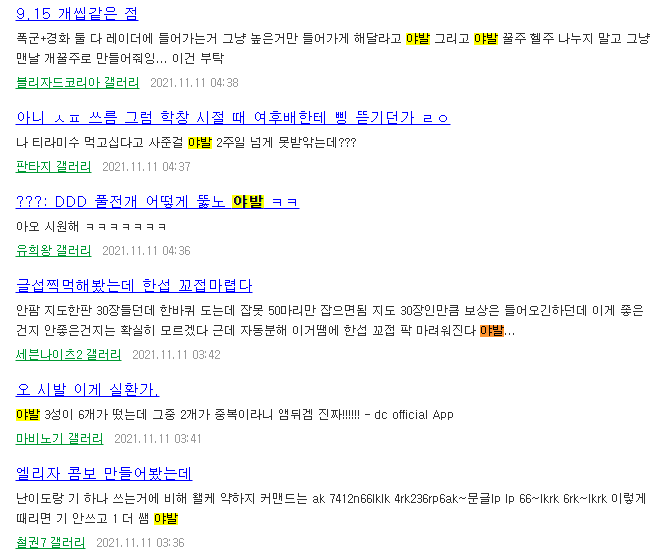국내 초대형 인터넷 커뮤니티이자 온갖 밈, 드립, 신조어가 탄생하기도 하는 디시인사이드, 그중에서도 국내야구 갤러리(야갤)라는 곳에서는 한때 좋아하는 것, 친밀한 대상에게는 앞에 야갤의 '야'를 붙이고, 부정적인 것, 비웃음의 대상에는 코미디 프로그램 갤러리(코갤)의 '코'를 붙이는 것이 하나의 드립이자 유행이었습니다. 이 야/코 드립은 시간이 가면 갈수록 긍정적, 부정적을 나눈다는 규칙은 없어지고 원 단어를 강조하기 위해 아무렇게나 사용하게 되었죠. 이런 유래로 인해 'X발'이라는 욕설도 '씨'를 '야'로 바꿔서 야발이라고 부르는 것이죠.