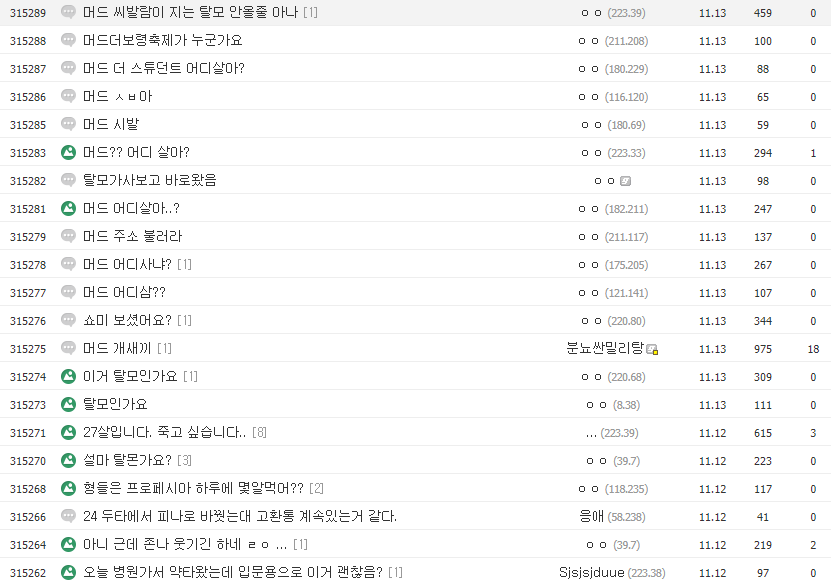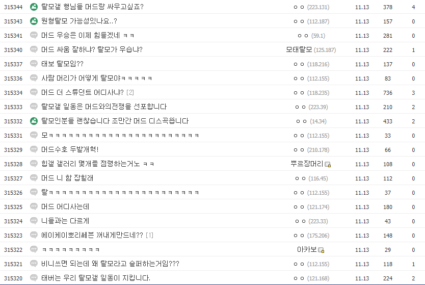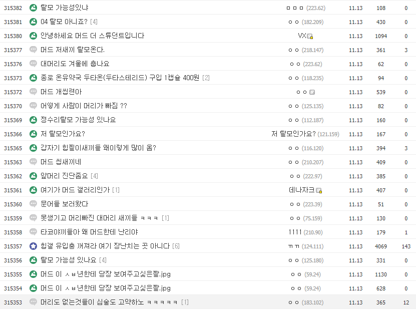 현재 탈모가 진행중인 사람들이 정보를 구하기 위해 혹은 나누기 위해 있는 갤러리인 탈모갤러리에서는 위 머드 더 스튜던트의 가사 내용으로 인해 화난 모습을 볼 수 있습니다. 그러면서 '머드 더 스튜던트도 나중에 탈모 온다', '머드 싸움 잘하냐', '머드 어디사냐', '머드 주소좀' 등의 게시글을 남겨 그걸 지켜보는 제 3자들에겐 웃음을 선사했죠.