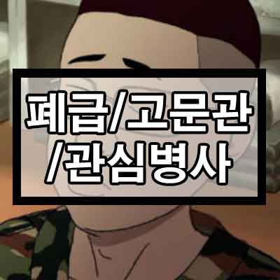 먼저 각각의 말에 대해서 폐급이란 말은 물품에 대해서도 사용되고, 고문관은 자문에 의해 의견을 말하는 직책이라는 뜻도 있습니다. 하지만 이번 시간에는 조금 더 일반적으로 현대 사람들이 들으면 이해하는 군대와 관련된 뜻들을 설명해드릴 예정입니다. 그렇다면 폐급, 고문관, 관심병사 하나하나 알아보도록 하겠습니다.
