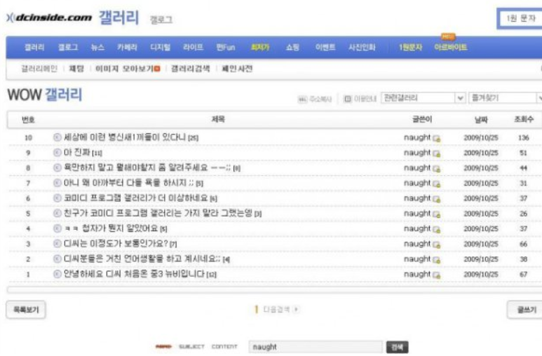 당시나 지금이나 사실 디씨 대부분의 갤러리들은 반말 기본에 욕도 많이 섞어서 하는 분위기인데요, 짤의 주인공인 'naught'라는 유저의 글 쓴 내역들을 보게 되면 하루만에 디씨 분위기를 적응하여 변하게 되는 모습을 볼 수 있습니다.