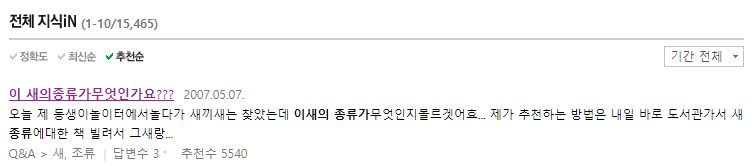 여하튼 해당 질문인데요, 보시다시피 아기새를 주워서 해당 새의 종류를 묻는 질문이였습니다.