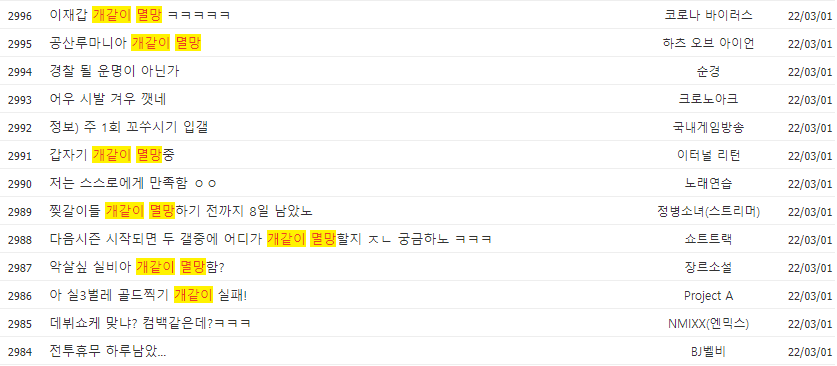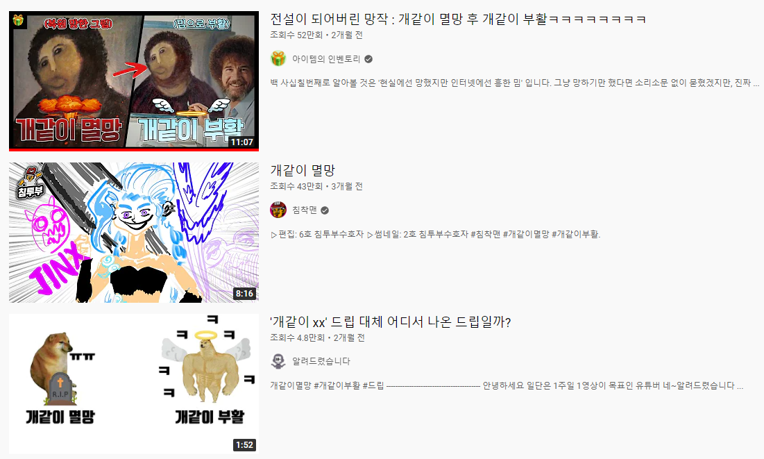 이렇게 이번 시간에는 개같이 XX 드립과 더불어 자주 사용되는 형태인 개같이 멸망, 개같이 부활에 대해서도 알아보았습니다. 그나마 최근의 유행어로 대다수 인터넷 커뮤니티, 인터넷 방송, 유튜브 등에서 접할 수 있는 말이죠. 그러면 이번 포스팅은 여기서 마무리하도록 하고 다음번에는 또 다른 글로 다시 찾아오도록 하겠습니다. :)