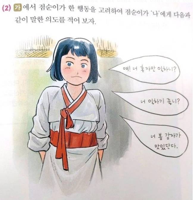 추가로 동백꽃을 읽어본 사람이라면, 혹은 다시 읽어본다면 1936년 소설의 여주인공인 점순이가 소위 말하는 '츤데레' 속성이라는 것을 알 수 있습니다. 주인공과 티격태격하면서도 잘 지내고, 주인공에게 호감의 표시로 봄 감자를 주지만 솔직하지 못한 성격이라 "느 집엔 이거 없지? 너 봄 감자가 맛있단다"라며 속마음을 들키지 않게 주려다 주인공이 결국 거부하죠. "딱히 널 위해 주는 건 아니고 어쩌다보니..." 하는 현대의 츤데레적인 모습입니다. 해당 장면 외에도 여럿 츤데레 기질을 보이는 장면이 등장합니다.