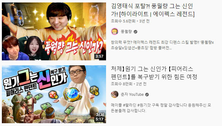 다양한 인터넷 커뮤니티 및 인터넷 방송, 유튜브를 살펴보다보면 종종 댓글이나 채팅으로 "(스트리머 닉네임) 그는 신인가?"라는 말을 볼 수 있습니다. 신격화 드립의 일종인 '그는 신인가'는 게임 리그오브레전드를 하는 인터넷 방송인, 피닉스박의 방송에서 유래되었습니다.
