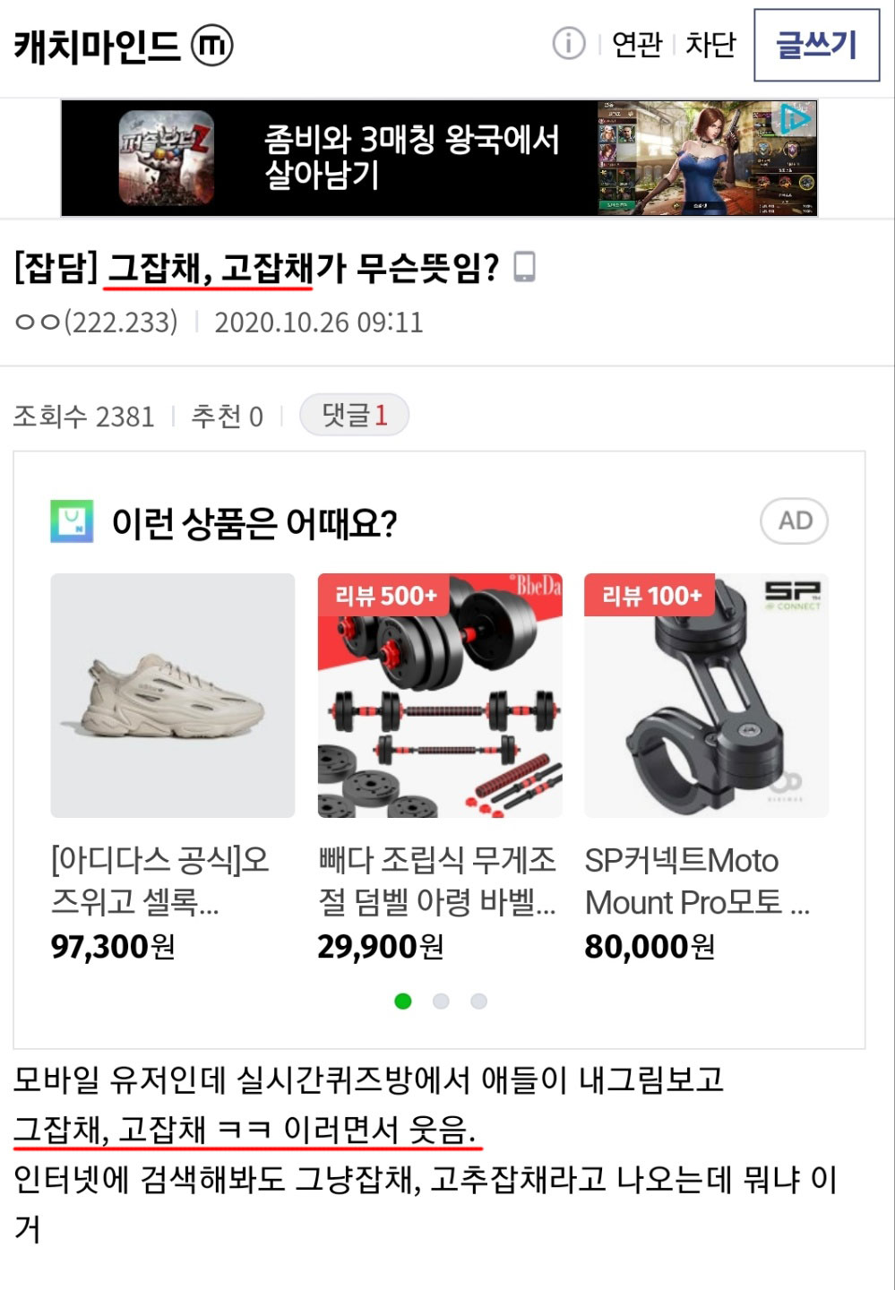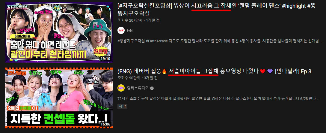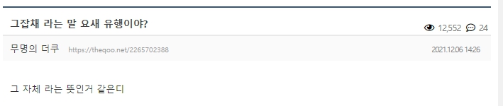 그 일례로 2020년 10월 디시인사이드 캐치마인드 갤러리에는 '그잡채', '고잡채'가 무슨 뜻이냐고 물어보는 질문글이 올라왔고 이에 한 이용자는 '그 자체라는 뜻이에요 아조씨'라는 댓글로 답을 남기기도 했죠.