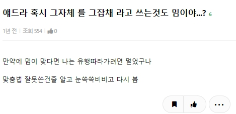 해당 밈을 가장 활발히 사용하고 있는 것은 트위터쪽이며 남초 커뮤니티쪽에서는 재미도 없고 억지 밈으로 치부하고 있으며, 다른 여초 커뮤니티들은 무난하게 사용하기도 하고 싫어하는 경우도 보이는 상황입니다. 그러면 이번 포스팅은 여기서 마무리하도록 하고 다음번에는 또 다른 글로 다시 찾아오도록 하겠습니다. :)