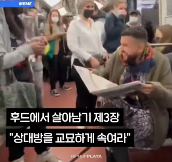 시간이 흐르면서 후드 바인즈는 실제 후드던 아니던, 흑인이건 아니건 상관 없이 그냥 힙한 영상에 힙합 브금이 씌워지면 후드 바인즈라고 할 수 있을만큼 의미가 확장되었습니다. 이 후드 바인즈를 국내 유튜버 힙플밈이 '후드에서 살아남기'라는 제목을 달고 그런 영상들을 올리는데, 자막을 굉장히 이해하기 쉽고 찰지게 달아서 인기를 얻기 시작했습니다. 아마 어렸을 때 유행했던 ~에서 살아남기 시리즈 책들의 제목과 후드를 합친 듯 보입니다.