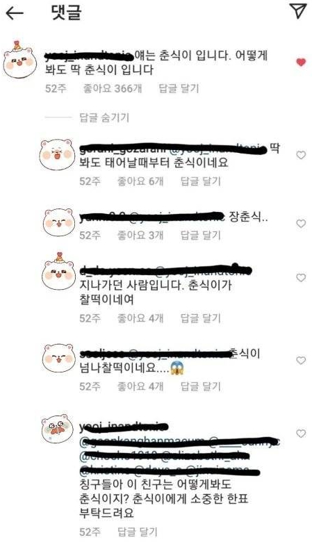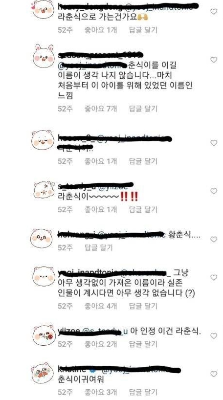 그러나 누군가가 춘식이라는 이름을 제안했고, 해당 댓글은 다른 댓글들과 달리 다른 이용자들로부터 엄청난 호응을 얻게 되었습니다.