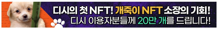 디시인사이드에서는 개죽이 원작자인 Nills와 협업하여 개죽이 NFT 25만 개를 발행, 그 중 20만 개를 디시인사이드 이용자들에게 지급하는 중입니다.