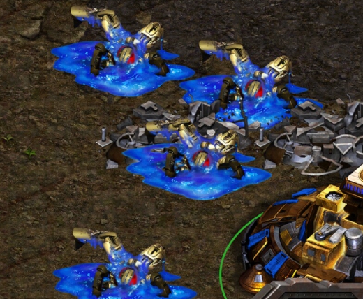 게임 스타크래프트에서 드라군이나 히드라 같은 유닛이 단체로 돌격하다가 시즈탱크나 리버, 사이오닉 스톰, 스파이더 마인 등에 한꺼번에 몰살을 당하는 경우에도 '살살 녹는다'는 표현을 사용합니다. 단체로 무기력하게 죽는 모습을 녹는다고 표현한 것입니다.