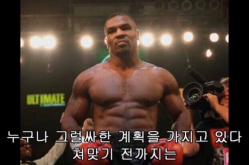 이렇게 이번 시간에는 '누구나 그럴싸한 계획을 가지고 있다, 쳐맞기 전까진' 드립에 대해서 알아보았습니다. 외국인이 말한 것이 이렇게 인기가 있게 된 경우는 이 이외에도 퍼거슨 감독의 'SNS는 인생의 낭비다(원문은 트위터는 시간 낭비다)', 고이즈미 신지로의 '그것이 약속이니까' 등이 있네요. 그러면 이번 포스팅은 여기서 마무리하도록 하고 다음번에는 또 다른 글로 다시 찾아오도록 하겠습니다. :)