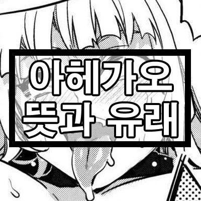 일본어 アヘ顔를 발음한 것으로, 입을 '아(ア)' 벌리고 혀를 '헤(ヘ)'하고 내미는 얼굴(顔)이라는 뜻입니다. 보통 성인물에서 느끼는 모습을 극단적으로 묘사할 때 아헤가오로 표현하곤 하며, 여기에 양 손으로 브이(V)를 하면 더블피스 아헤가오라고 합니다.