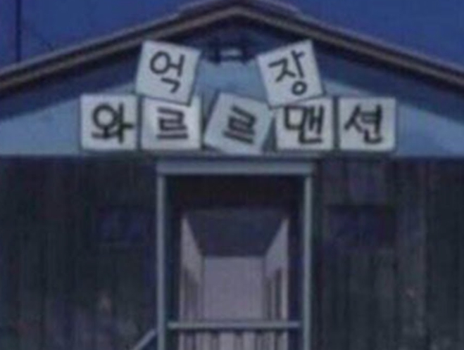 짱구는 못말려 시리즈에서 나오는 소형 공동주택 이름이 '와르르맨션'입니다. 짱구는 못말려에서 원래 살던 집이 가스 폭발로 인해 날아가고, 임시 거쳐로 지낸 곳입니다. 굉장히 낡고 허름하여 곧 무너질 것 같기도 한 느낌을 주는 특징을 살려 '억장이 무너지다'의 '무너지다' 대신 '와르르맨션'을 넣어 '억장 와르르맨션'이 되었습니다. 짱구는 못말려에서 짱구네 가족이 와르르맨션에 거주하는 부분은 한국판 7기 20화~8기 20화에 해당됩니다.