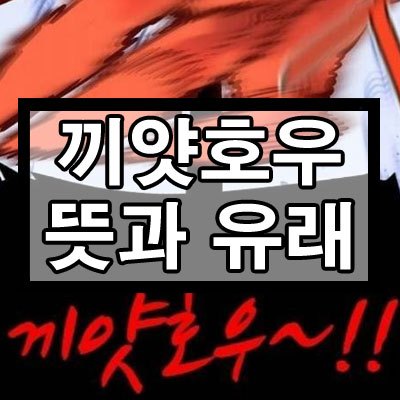 기쁘거나 신나는 일이 있을 때 자신도 모르게 나오는 탄성을 표현한 말입니다. 감탄사 '야호'를 한 차례 더 강조하려고 앞에 '끼'를 붙이고, 일부로 '호' 부분을 늘려 '호우'로 표현한 것입니다. 이 과정에서 '야호'의 '야'가 '얏'으로 변해 보통 '끼얏호우'로 많이 사용합니다.