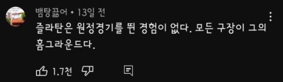 위와 같이 즐라탄 관련 영상에는 저런 즐라탄 밈 댓글이 계속해서 나오는 편입니다.