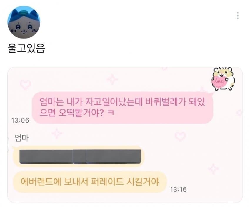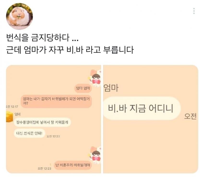 트위터에서 자신의 엄마(혹은 아빠)에게 만약 자신이 바퀴벌레가 된다면 어떻게 할 것이냐는 질문을 하는 것이 유행이었나봅니다. 자녀들의 이런 질문에 부모들은 저마다 기상천외한 답변들을 내놓았습니다. '화형'부터 시작해서 '웩', '에버랜드 보내서 퍼레이드 시킬거야' 등의 답변들이 달렸습니다. 이러한 질문/답변을 모은 글은 '엄마 내가 바퀴벌레가 되면 어떡할거야?'라는 제목으로 각종 인터넷 커뮤니티로 퍼지며 화제가 되고 있습니다.