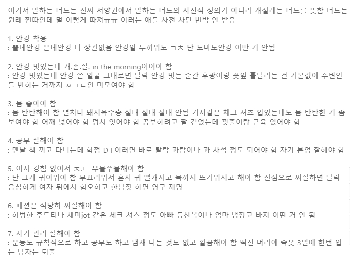 꺼무위키에 나온 너드남 통념들입니다.