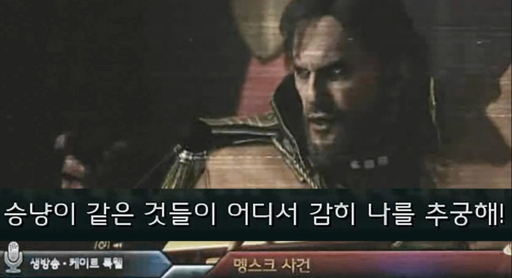 위의 영상의 50초 부분부터 보면 멩스크가 '승냥이같은 것들이 어디서 감히 나를 추궁해?!'라는 대사를 뱉는 것을 확인할 수 있습니다.