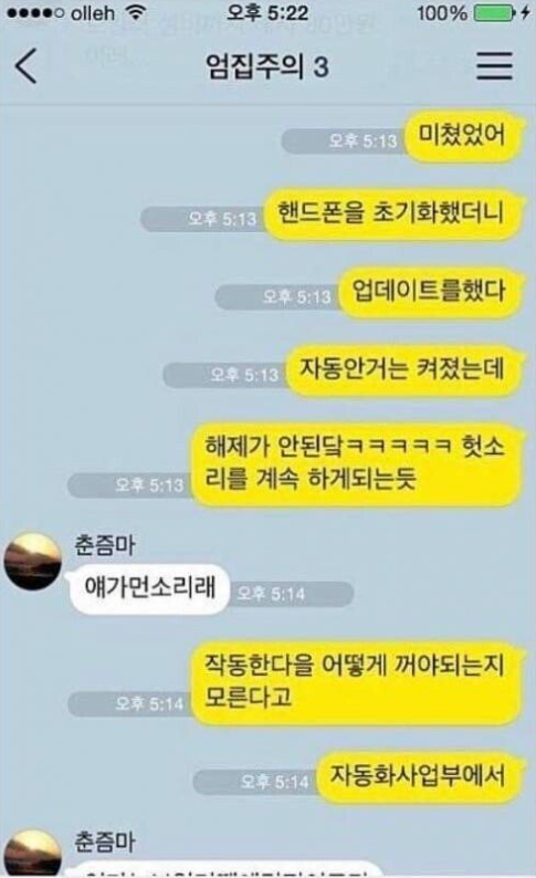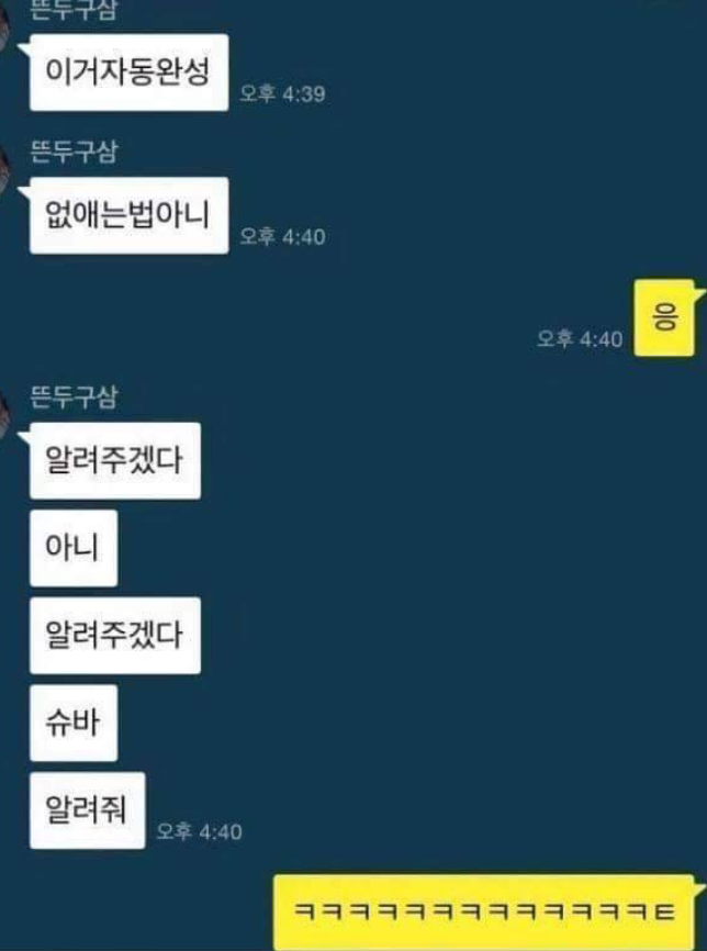 이번에 소개해드릴 것은 아이폰 자동완성 대참사 짤 모음입니다. 아이폰은 문자를 입력할 때 자동으로 뒷부분이 완성되는 기능이 있는데, 아이폰을 처음 사용하는 사람들은 이 자동완성 기능을 잘 활용하지 못해서 채팅 중 실수가 발생하곤 합니다. 그러한 대참사 짤들을 모아놓은 글입니다.