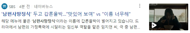 위처럼 남편사망정식이라는 태그를 달며 인증하는 것이 유행이 되자 해당 내용이 각종 언론사에 보도되었고, 이에 대해 네티즌들은 지나친 표현이라는 의견과 예능을 다큐로 받는다는 의견으로 나뉘고 있습니다. 남초 커뮤니티에서는 해당 명칭이 남성 혐오적 표현이라는 의견이 대다수를 차지하고, 여초 커뮤니티에서는 단순히 가해자(가정 폭력범)의 사망으로 인한 피해자의 해방감을 표현하는 장면에서 비롯된 명칭이라는 의견이 대다수입니다.